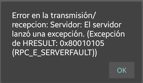 2.- Error en la transmision/recepcion: Servidor: El Serevidor lanzo una excepción. (Excepcion de HRESULT: 0x80010105 (RPC_E_SERVERFAULT))